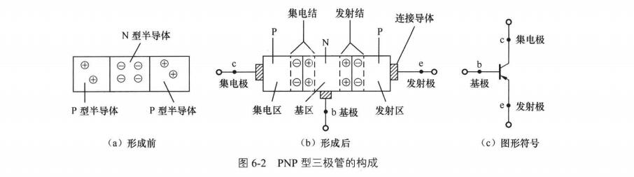 三极管有PNP型和NPN型两种。PNP型三极管的构成如图6-2所示。